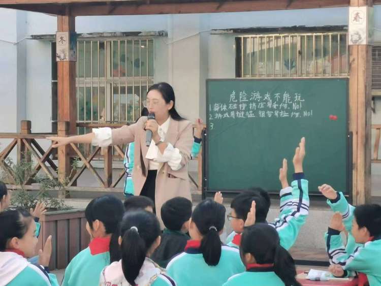 吴梦阳老师将教室主场地转移室外,开展户外教育。主讲“生命安全教育”之《危险游戏不能玩》课堂以事实案例来梳理游戏中的危险隐患,与同学一起制定公约展开教学,课堂上学生讨论交流并自创游戏,梳理知识点,整堂课以生为主,师引导为辅,课堂紧凑,突破重难点。