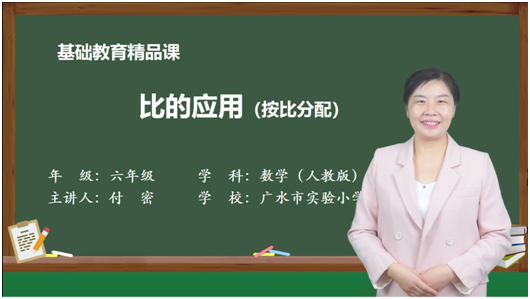匠心育蓓蕾 ,深秋结硕果。近日,2023年湖北省基础教育精品课遴选揭晓,广水市实验小学付密执教的《比的应用》喜获湖北省一等奖,热烈祝贺!