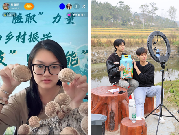 老师和同学们一行先后来到曾都区洛阳镇九口堰村、珠宝山村和易家湾村,将农民家中的香菇、茶叶、香稻、柑桔等农产品放进直播间,时而细心介绍,时而当面品尝。“我们的柑桔味道独特,产地直销,绿色健康,让大家在家也可以品尝到新鲜的柑桔”;“我们的香菇个大肉肥,不施化肥、价格优惠”;“我们的香稻米色晶莹剔透,香米饭粒完整,柔软爽滑”……直播间气氛活跃,有问有答,充满乐趣。