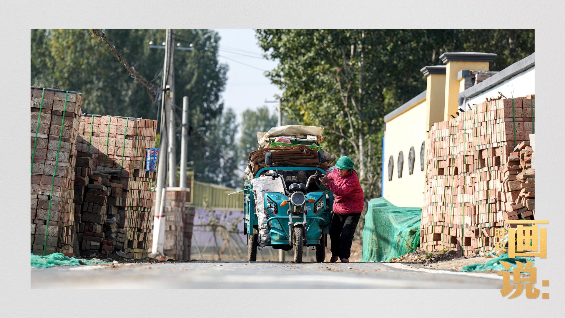 △冬日午后,暖阳正好,村民向重建的宅基地运送建筑材料。刁窝镇万全庄村,涿州。万全庄村位于兰沟洼蓄滞洪区,今年汛期,全村311户全部受灾。
