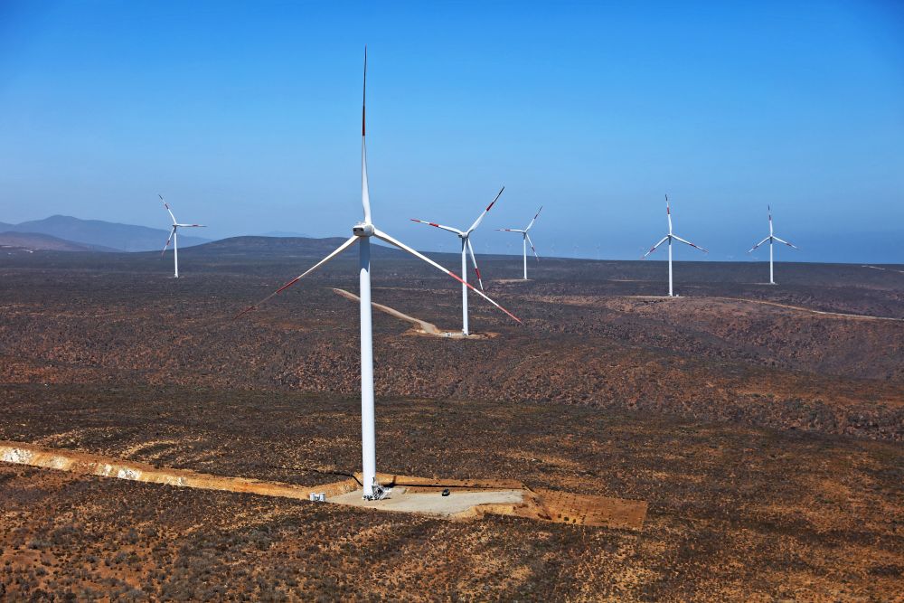这是2023年2月14日拍摄的位于智利中部沿海的蓬塔谢拉风电场。蓬塔谢拉风电场是中国在智利投资建设的首个风电场,2018年正式投产发电,可满足13万户家庭的用电需求,同时每年还能减少15.7万吨碳排放。