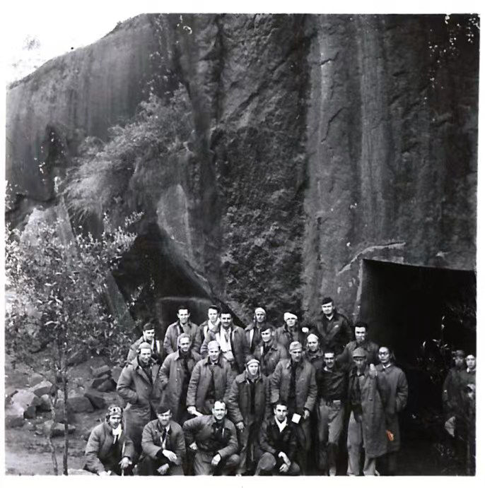 被中国百姓营救的部分美国飞行员集中在位于衢州的空军航空第13总站门口合影。(资料图)