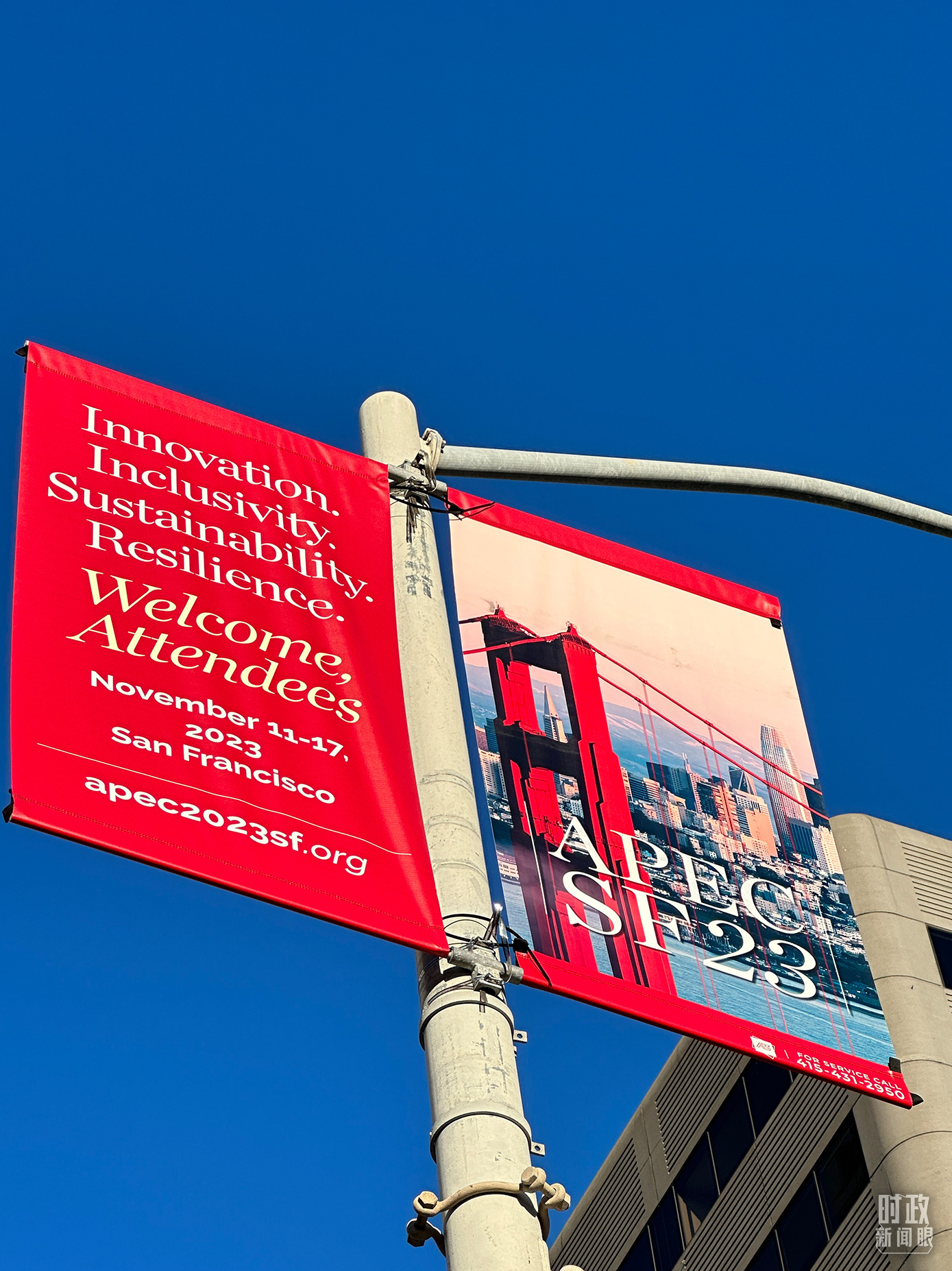 △旧金山街头,本次APEC会议宣传语。(总台国广记者时冉拍摄)