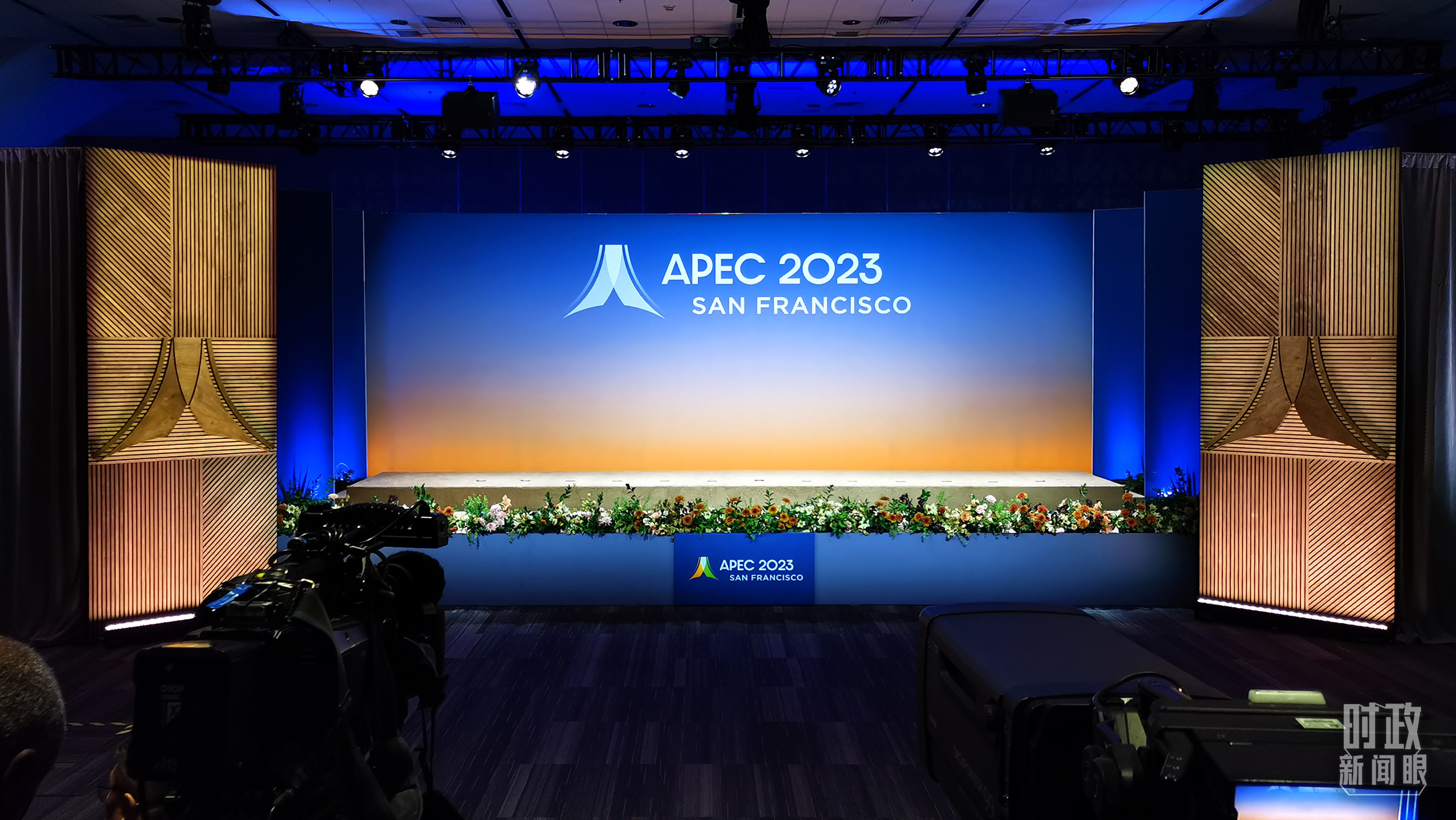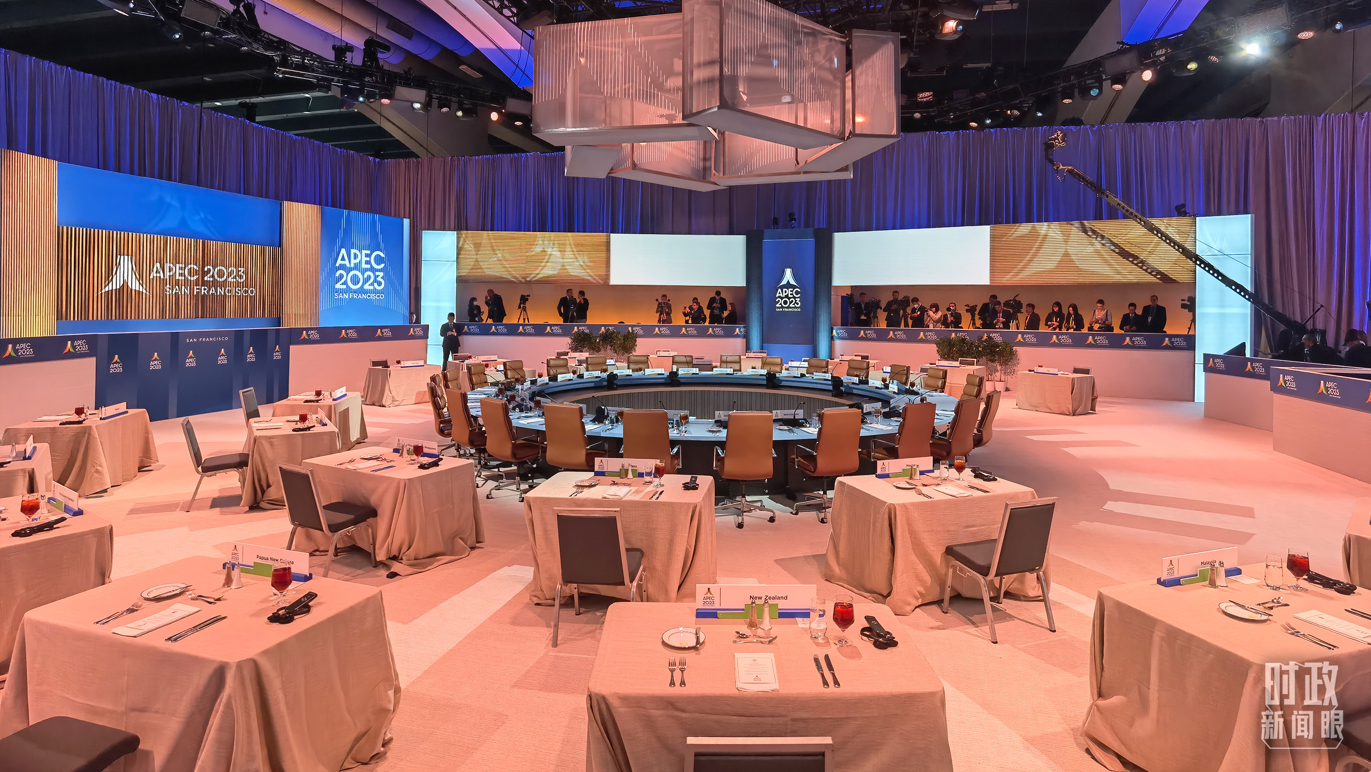 △16日,APEC领导人同东道主嘉宾在对话会前集体合影,图为记者们在等待合影开始。(总台央视记者石伟明拍摄)