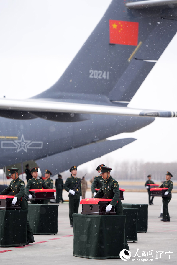第十批在韩中国人民志愿军烈士遗骸搭乘空军运-20专机回国。沈阳桃仙国际机场以“过水门”最高礼遇迎接25名志愿军烈士回家,两架歼-20超低空通场致敬先烈。