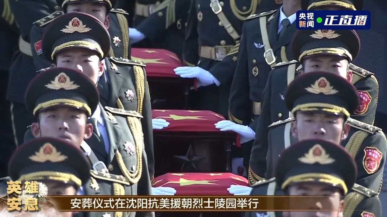 记者从退役军人事务部了解到,11月24日上午,第十批在韩中国人民志愿军烈士遗骸安葬仪式在沈阳抗美援朝烈士陵园举行,25名牺牲在异国他乡的志愿军英烈70多年后在祖国大地上安息。