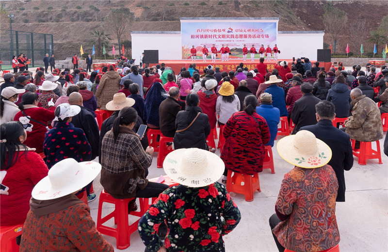 12月6日,曾都区送文化下乡活动在府河镇拉开帷幕。本次活动以践行核心价值观,引领文明新风尚为主题,精彩的文艺节目受到群众的欢迎。(全媒记者孙洪涛 通讯员高建新摄)