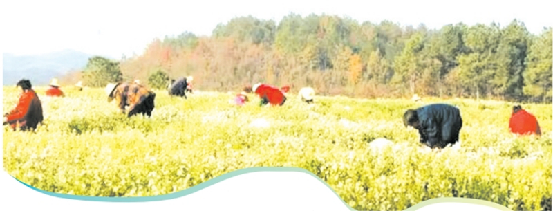 近日,随县柳林镇院子河村福白菊种植基地,菊花竞相绽放,菊农们趁着晴好天气采摘菊花,忙得不亦乐乎,福白菊成为村民致富的“金色产业”。(随州日报通讯员刘敏摄)