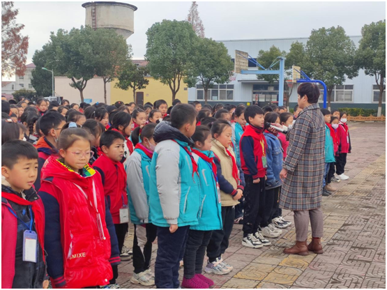 江军老师发表《勿忘国耻,立志成才》的讲话。让大家了解南京大屠杀的背景和经过,深深感受到今天的幸福生活来之不易。虽然今天格外寒冷,学生们的小脸冻得红红的,但他们都听得很认真。讲话结束后,德育处史校长随机抽查学生,问问他们听到什么、国家公祭日是哪一天、南京大屠杀多少同胞被杀害、我们应该怎么做等一系列的问答,同学们都能对答如流。史校长号召全体学生勿忘国耻,为中华民族的伟大复兴努力读书。