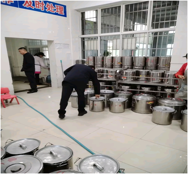 随后,他们先后来到镇小与二小巡查。在镇小,他们察看了学生上学状况后,来到食堂,检查食堂卫生,了解学生的早餐准备。