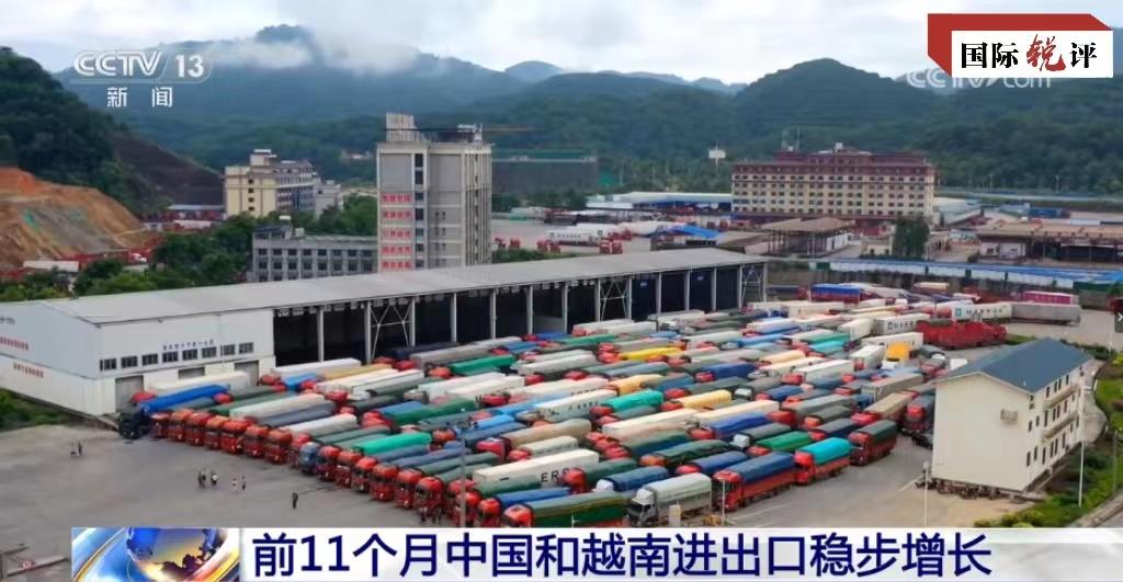 经贸合作是中越关系的一大亮点。近些年,越南的火龙果、香蕉、榴莲等优质农产品走进中国市场,深受中国消费者喜爱。河内轻轨2号线、朔山垃圾发电厂、光伏产业合作……中企在越南参与实施的一系列项目,有力拉动了当地经济社会发展。数据显示,中国连续16年成为越南最大贸易伙伴,越南是中国在东盟最大贸易伙伴和全球第四大贸易伙伴。今年前11个月,中越进出口总值达1.45万亿元人民币,同比增长3.6%。
