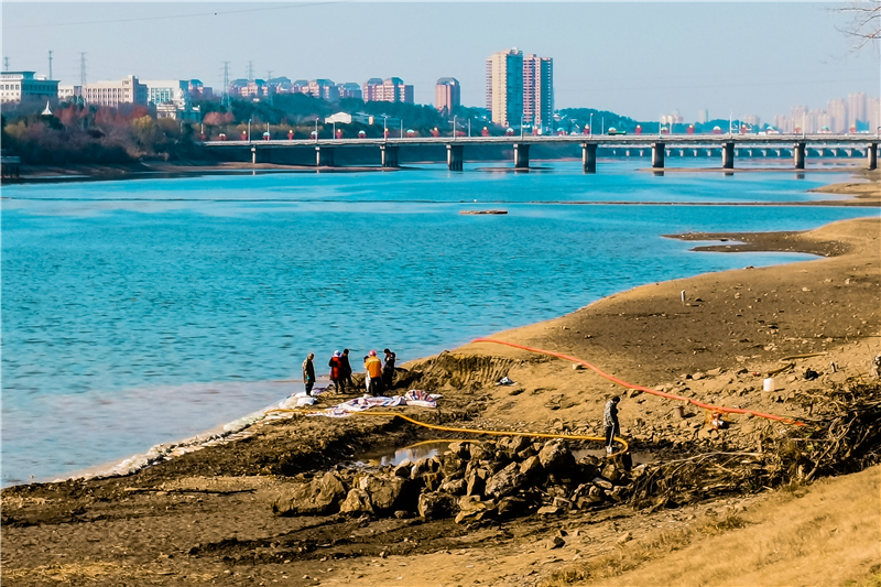 12月19日,我市城建部门利用枯水期,对白云河沿岸因自然灾害损毁的河堤进行维修加固,保障安全。(全媒记者 孙洪涛摄)