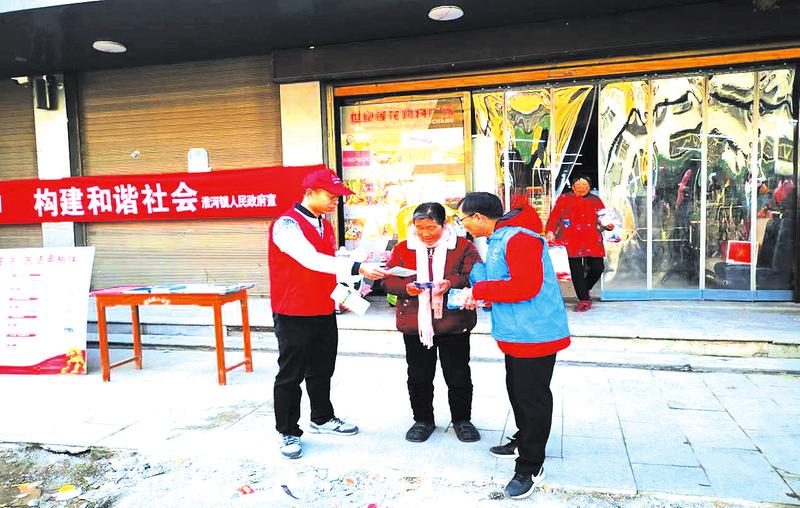 近日,随县淮河镇财政所在街头开展了惠农政策宣传活动,志愿者们为来来往往的群众详细讲解了各项惠民惠农政策和补贴内容,进一步提高了群众对各项政策的了解程度,现场发放了宣传资料400余份。(随州日报通讯员李小鹏 王珍珍摄)
