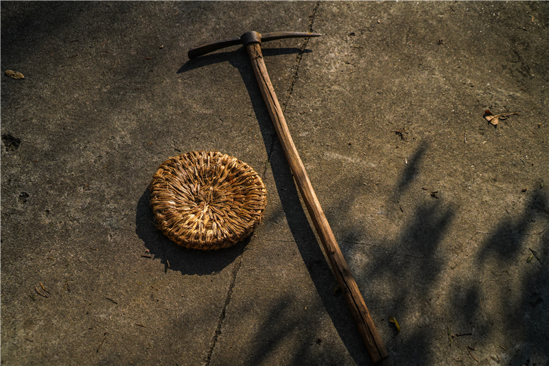 植树40多年,付本发坐烂了100多个草垫、挖钝了100多把镐锹。拍摄于2023年。