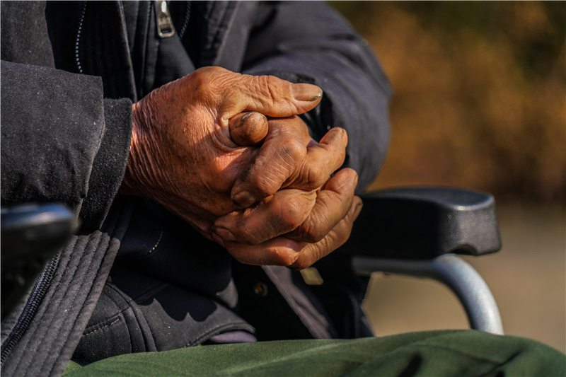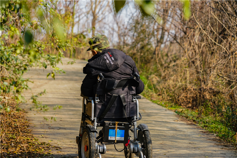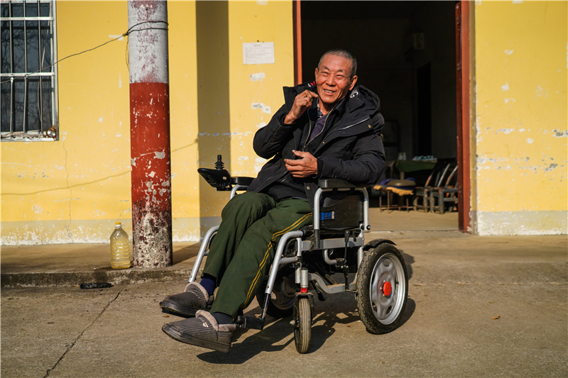 付本发2022年住院后身体状况欠佳,但他仍然坚强乐观。拍摄于2023年。