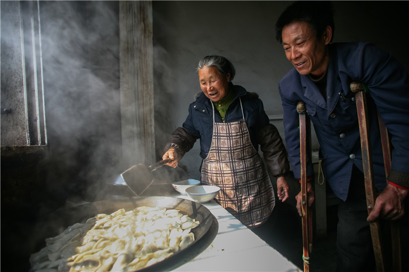 当地村民非常佩服付本发,经常抽时间照顾他的生活。拍摄于2008年。
