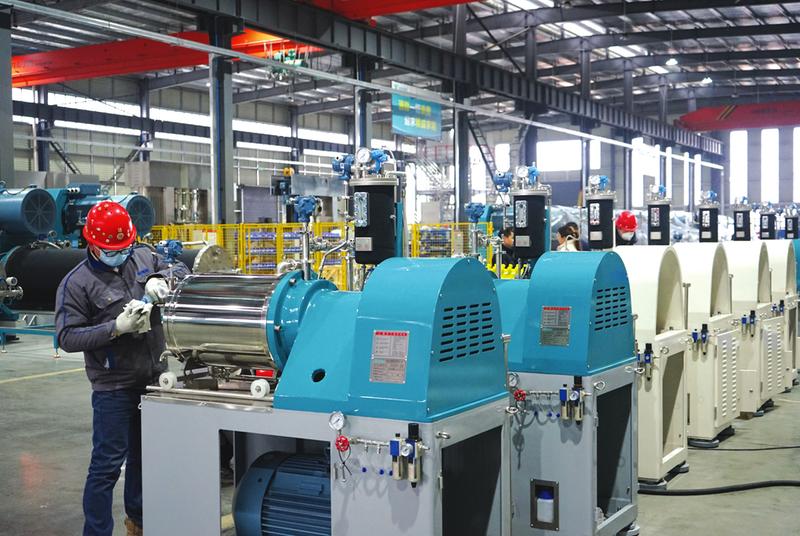 这款纳米砂磨机是琅菱智能的“拳头”产品之一,采取棒销式高效研磨结构,适用于纳米级研磨大流量连续式、循环式生产。