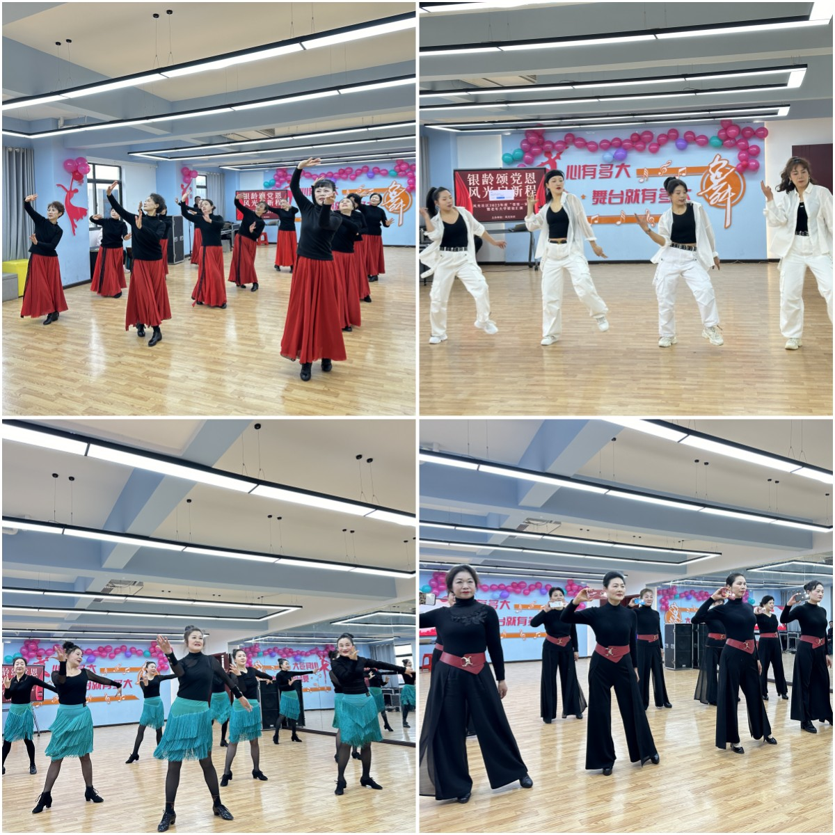 演出在喜气洋洋的《新年秧歌舞》中拉开帷幕,舞蹈班学员带来了舞蹈《歌唱祖国》,舞者们身姿矫健,步伐轻盈生动,她们富有活力的表演展现出老年人的热情与活力。