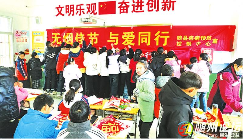 近日,随县唐县镇中心卫生院联合随县疾病预防控制中心,到唐县镇第二小学为师生科普烟草和电子烟危害,帮助青少年树立“拒吸第一支烟,做无烟新一代”的理念。 (随州日报通讯员罗文康摄)