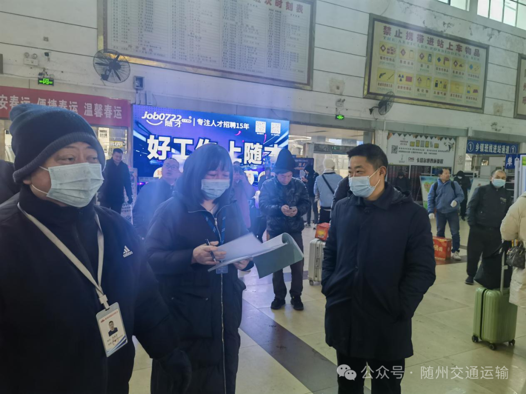 为确保群众生命财产安全,结合道路结冰情况,2月2日,随州市客运东站、客运中心站、客运南站所有班线暂停运营,市道路运输中心春运专班人员到各客运站进行了安全检查,并督促各站场值班人员积极做好因停班滞留旅客解释沟通和困难帮扶工作。