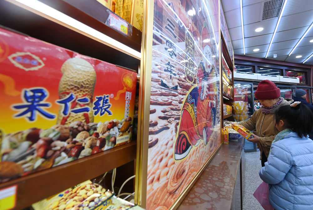 近日,顾客在天津古文化街果仁张选购零食。新华社记者 赵子硕 摄