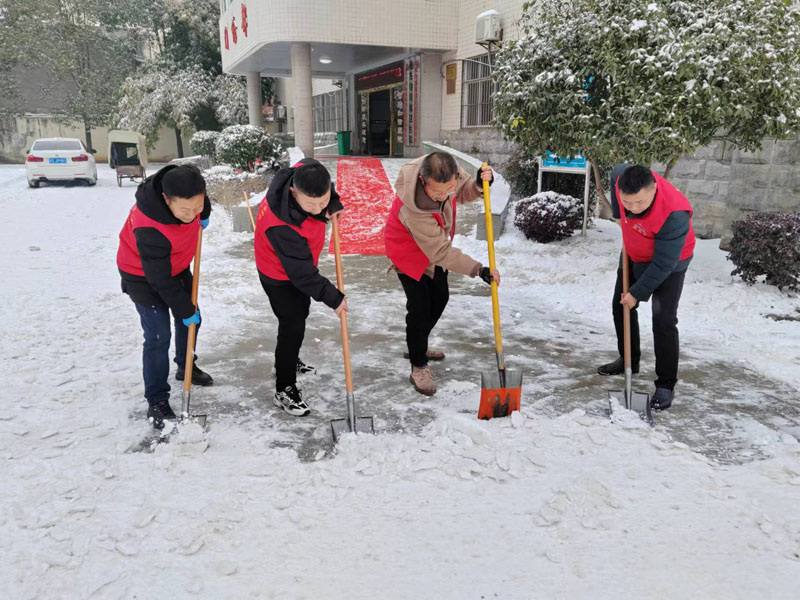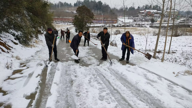 夜幕降临,气温骤降,路上行人寥寥。位于均川镇富家棚村的高庙小集镇却传来阵阵声响,退伍老兵曾庆忠和附近村民就着夜晚周边楼房照射的零星光点,费力敲击着厚厚的积雪。大雪刚停歇,曾庆忠便和老伴一起拿着扫帚、铁锹,开始了清积雪保畅通的工作。“人多力量大嘛,哪能只扫自家门前雪呢。就想着,明儿一早过往的村民可以顺顺当当的通过。”曾庆忠搓着冻红的双手乐呵呵地说。
