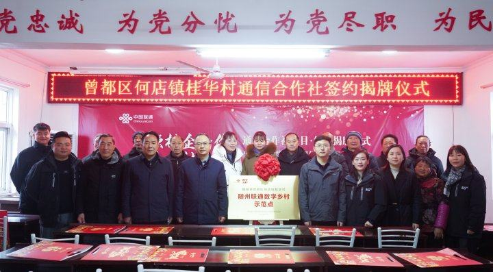 近日,曾都区桂华村通信合作社正式挂牌成立,随州联通党委委员、副总经理周炜灿,何店镇党委副书记、镇长白俊,桂华村支部书记龚焕新等参加签约挂牌活动。