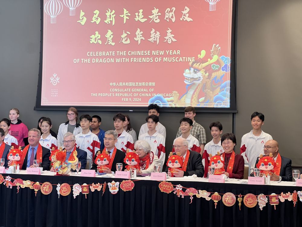 2月9日,在美国艾奥瓦州马斯卡廷,中美新朋老友欢度龙年新春。