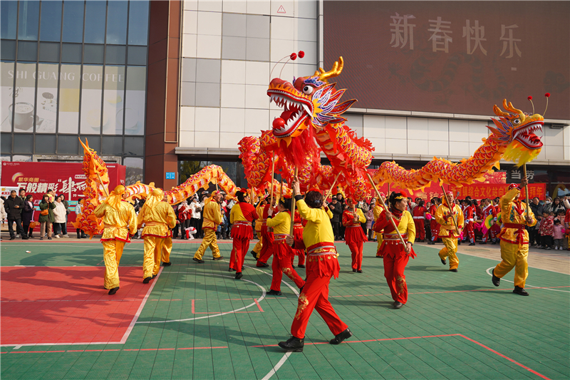 春节期间,曾都区淅河镇组织传统文艺节目走村串巷,为群众送上文化大餐。图为龙灯表演。(全媒记者孙洪涛 通 讯员王涛摄)
