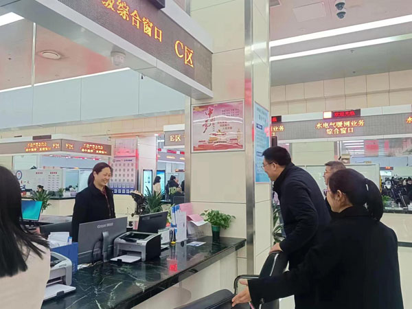 随州新闻网讯 (通讯员郑黎明、陈海容)2月18日,春节复工第一天上午10点左右,市人社局党组书记、局长刘加进,党组成员、副局长蔡洋一行来到市政务服务大厅,慰问市人社驻政务服务大厅窗口工作人员,向大家致以节日的慰问和新春的祝福。 刘加进亲切慰问了人社窗口的每一位工作人员,详细询问了窗口各项业务办理运行情况,感谢大家在过去的一年里为人社政务服务工作做出的积极贡献,激励大家新年新起点,脚踏实地、埋头苦干,以高度的责任心和热情的服务,为办事群众及企业提供优质高效的办事体验,为深化“一网通办”、“一窗通办”“一次办好”,深入打造“集成式”随州人社政务服务新模式,为随州打造一流营商环境贡献人社力量。