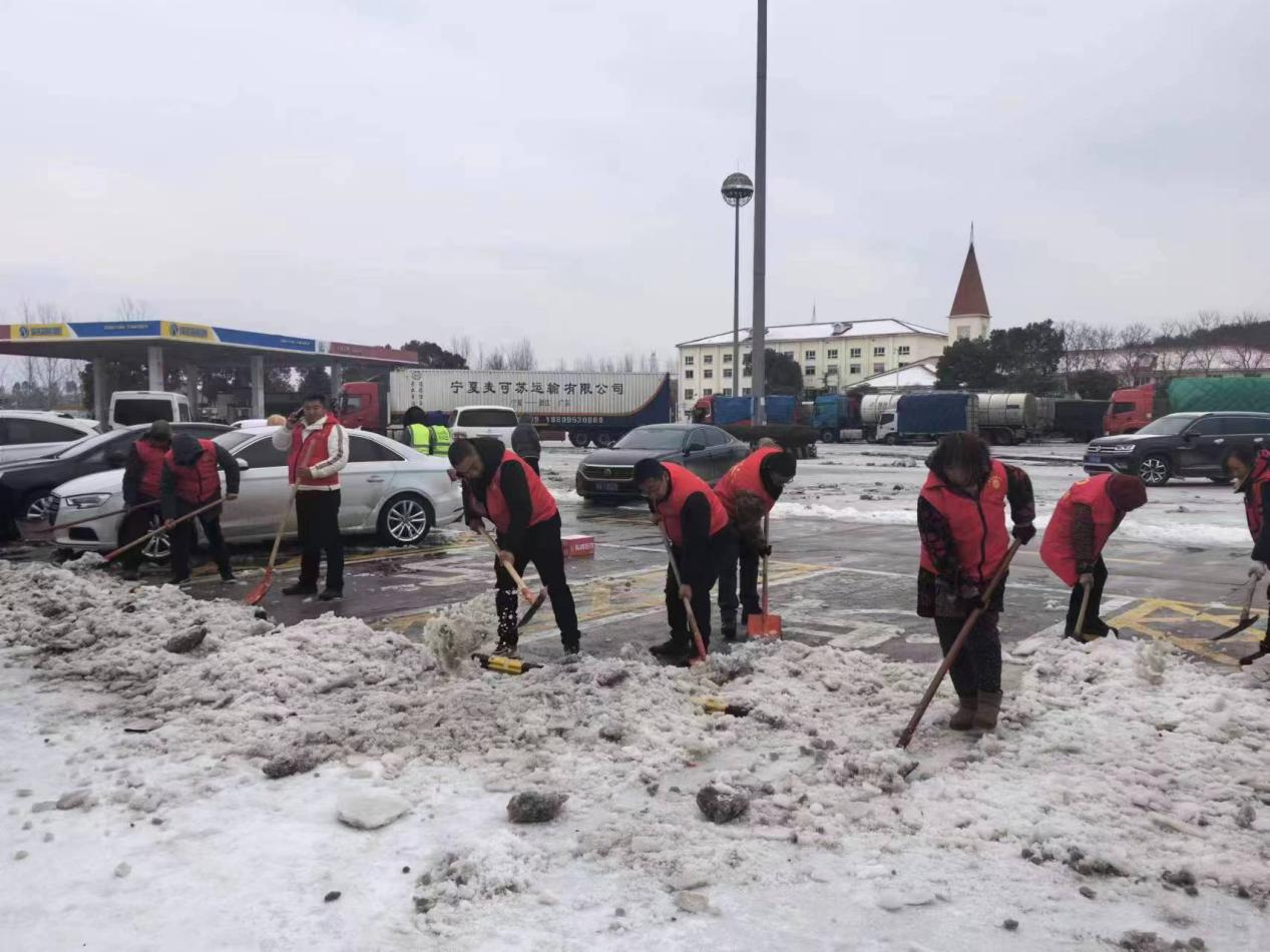 干群同心,共同克服冰雪挑战。各村(居)委会积极安排党员干部、志愿者、热心群众对村内主次干道的冻冰进行扫除,其中九里岗村带领志愿者支援随州高速服务区,保障交通顺畅和群众出行安全。此外,澴潭镇积极动员辖区居民落实各家各户门前清扫责任,引导居民主动清扫门前区域冻冰,解决潜在的安全隐患。此次行动不仅给群众出行带来了便利,也用实际行动诠释了党员干部的奉献精神,充分展现了团结协作的干群形象。