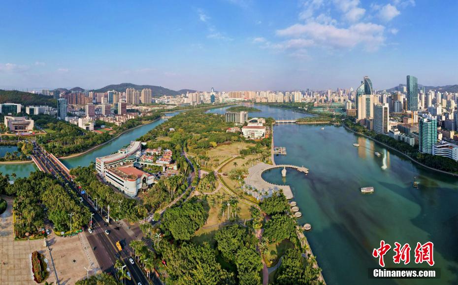 资料图:航拍厦门市中心的筼筜湖以及依湖而建的公园。 王东明 摄