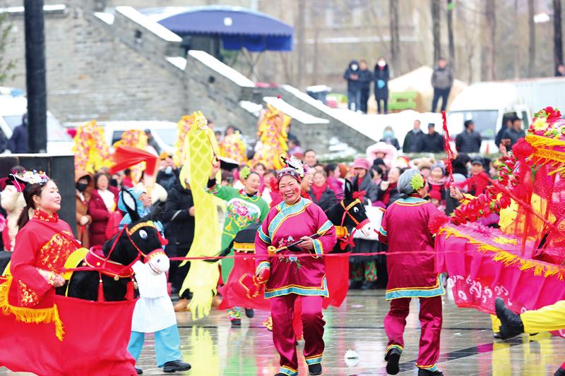 活力四射的舞龙舞狮、响彻云霄的锣鼓、风趣诙谐的拉独轮车等欢乐喜庆、年味十足的民俗表演纷纷亮相。虽然天气寒冷,但演员们个个洋溢着十足的热情,他们身着艳丽的节日盛装,迈着整齐的步伐,用激昂的鼓点奏响节日的欢歌,感染着现场每一位观众。“今天带家人一起来看演出,年味儿很足,希望我们的日子能像今天的演出一样热闹红火。”市民吴东明激动地说。