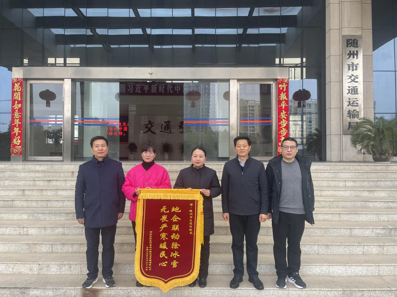 ▲2月28日,湖北交投襄阳高速公路运营管理有限公司给随州市交通运输局送来了“地企联动除冰雪 无畏严寒暖民心”锦旗和感谢信
