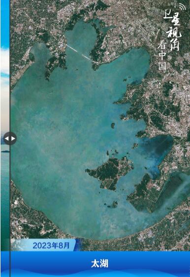 左右滑动切换卫星图-实景图。经过综合治理,太湖湖体水质实现新改善,2023年上半年太湖水质首次达到良好湖泊标准,全年水质藻情达到2007年以来最好水平。