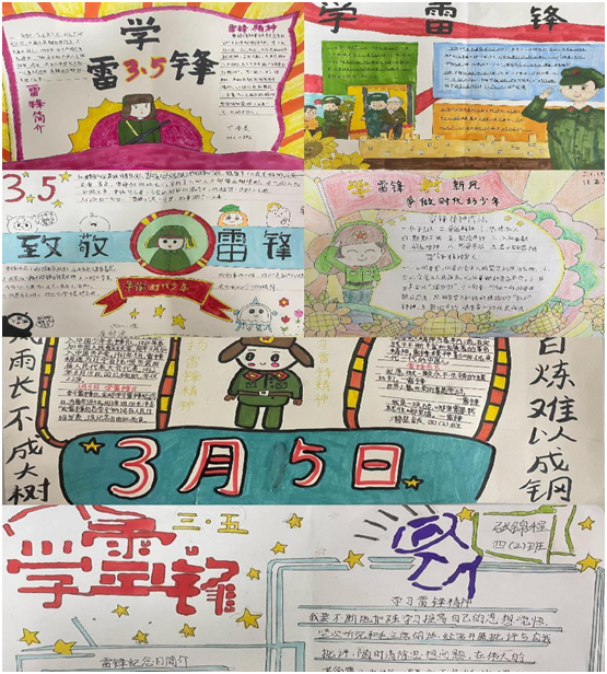 为进一步弘扬雷锋精神,大力营造学雷锋活动的氛围,一二年级的同学们观看雷锋主题电影,把“雷锋精神”这颗种子深深地埋在心中,让雷锋精神在校园里绽放更加辉煌的光芒。三四年级的同学们用心中的满满创意画“雷锋”、画英雄,绘出满怀民族自豪与骄傲的画卷。五六年级同学们设计了以“雷锋精神伴我行”为主题的黑板报,主题鲜明,内容翔实丰富,有的讴歌雷锋精神,有的宣传雷锋的感人事迹,有的收集雷锋名言录,多角度诠释了雷锋精神的内涵。