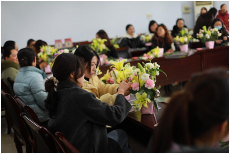 活动现场,由学校工会邀请的随州花艺专家,为到场教职工进行了插花指导教学,从花材品种、色彩搭配等方面进行了深入浅出的讲解,并现场演示插花的基本技巧。老师们积极动手、利用现场丰富的插花材料和鲜花大胆进行了尝试,耐心修剪花枝、整理花朵、构思插花位置,一束束精美的插花作品在她们的巧手中纷纷呈现。活动现场欢快温馨,女性教职工们在忙碌工作之余,享受了一段宁静而美好的时光。她们纷纷表示,这样的活动不仅让她们度过了一个愉快的节日,还让她们在插花的过程中感受到了艺术的魅力和生活的美好,增加了生活的仪式感。