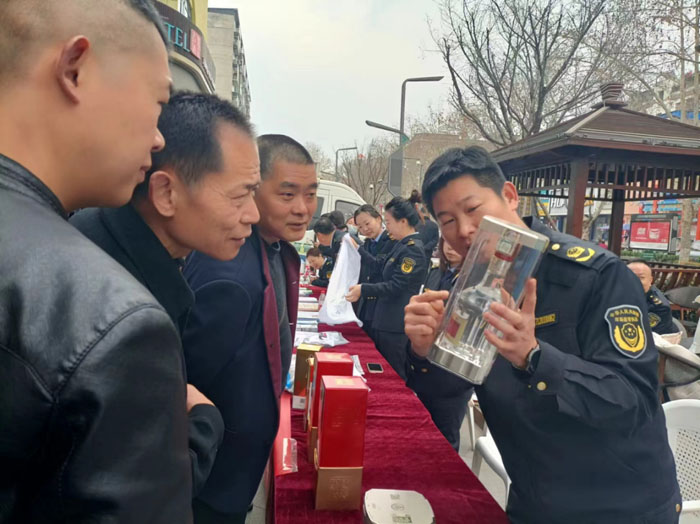 南郊市场监管所设立假冒伪劣商品展示台,现场讲解假冒伪劣商品辨识技巧。