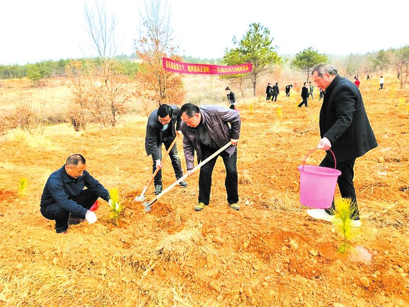 3月12日,随县吴山镇财政所全体干部职工来到邱家河村黑石沟,积极参加义务植树活动,为绿满随县贡献财政力量。大家按照事先划定好的植树区域,拿起铁锹、铁镐、水桶等工具,有的挖窝铲土,有的扶植树苗,有的铲土培土,有的提桶浇水,每道工序都做得认真细致。新栽植的松树苗迎风挺立、错落有致,为蓬勃发展的吴山再添一抹新绿。(随州日报通讯员刘爽摄)