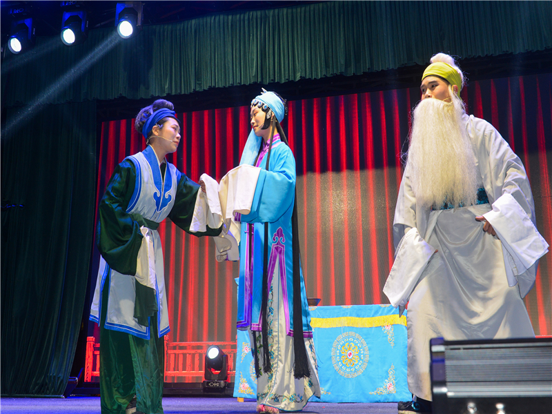 曾都区花鼓剧院编排的花鼓戏《神韵随州三祖鼎立》为活动拉开了序幕。花鼓小戏《回娘家》、花鼓小戏《梁祝》、花鼓小戏《赵五娘吃糠》、花鼓小戏《狮子楼》、男女声二重唱《万紫千红》、花鼓小戏《相亲》等将活动推向高潮,大堰坡社区居民说这是党的政策好我们坐在自已的家门口看大戏,领略高雅艺术的魅力。(随州日报通讯员 王涛摄)
