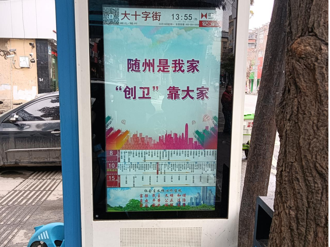 截至目前,共拆除旧广告牌、更新新广告牌46处,大幅提高公交站牌的创卫宣传广告数量和面积,营造创卫氛围,做到全民知晓。