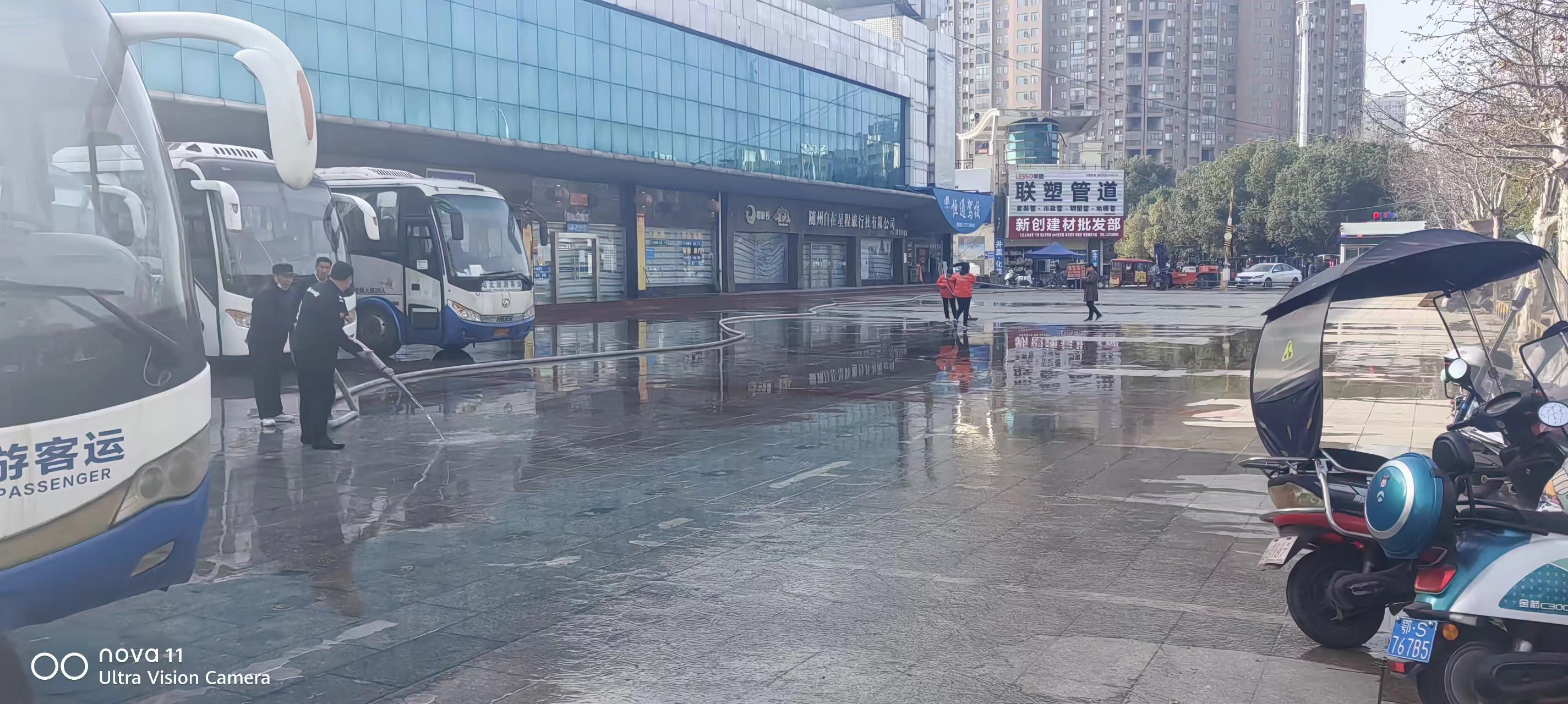 恒通公司组织人员对客运东站站前广场进行冲洗,张贴禁烟标识,更换健康教育专栏和横幅宣传创卫,营造创卫浓厚氛围。