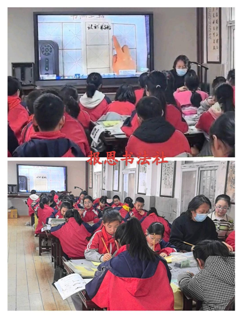 包冬梅老师的一节日常书法课,以学科融合方式进行,指导孩子们书写鲁迅名言,孩子们全神贯注,“提、顿、按、折、回”孩子们潜心书写。