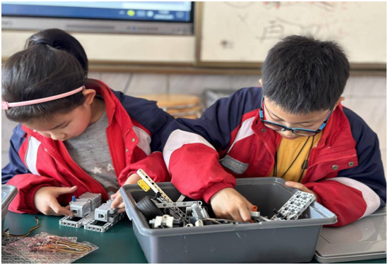 创意编程社团的孩子们正在进行搭建、拼装,完成实验项目。