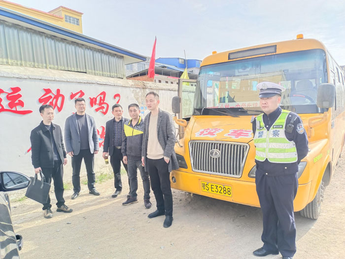 检查现场,各成员对接送学生车辆的营运资质、营运路线、消防逃生设施、车辆安全维护、驾驶员证照、随车人员业务培训等情况进行了检查。随后,专班又一一检查了校车档案资料。