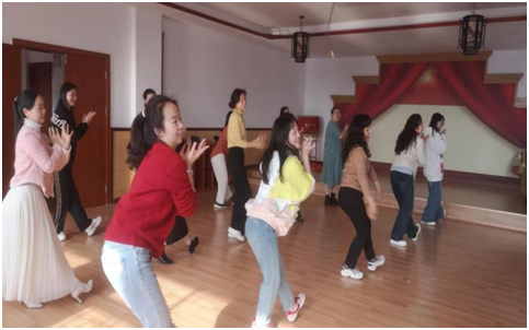开嗓练习、分声部学唱......合唱团在肖春丽老师的组织指导下,张弛有度地开始了新曲目练习;在练功室内,舞蹈社团的老师们跟随音乐的旋律,舒展起舞姿;剪纸社团的老师们在副校长施圆圆的指导下,情味盎然地开展学剪活动。