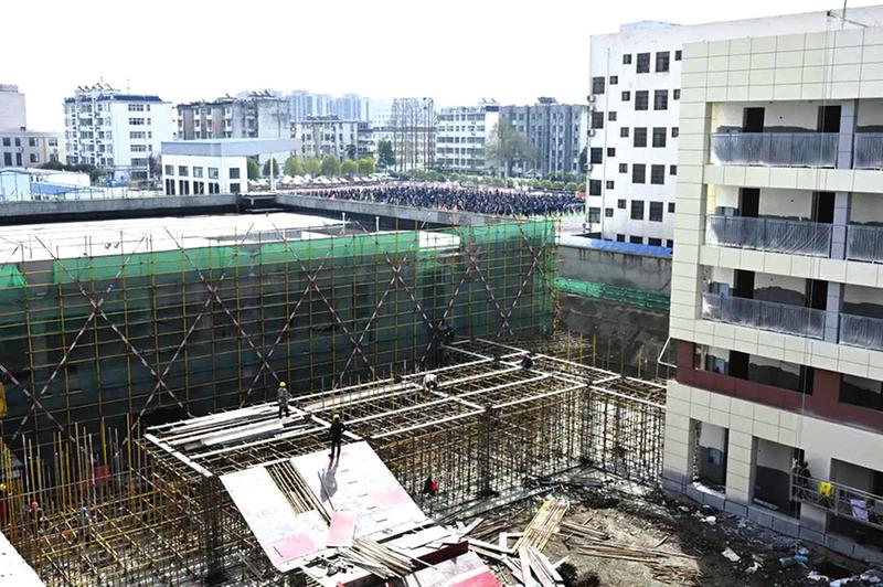 随州日报讯(特约记者熊晓枝)3月19日,走进曾都二中改扩建项目施工现场,两栋宿舍楼和食堂主体已经封顶,宿舍楼正在进行内外部装修施工,连廊、管网建设和绿化工作正在火热进行中。