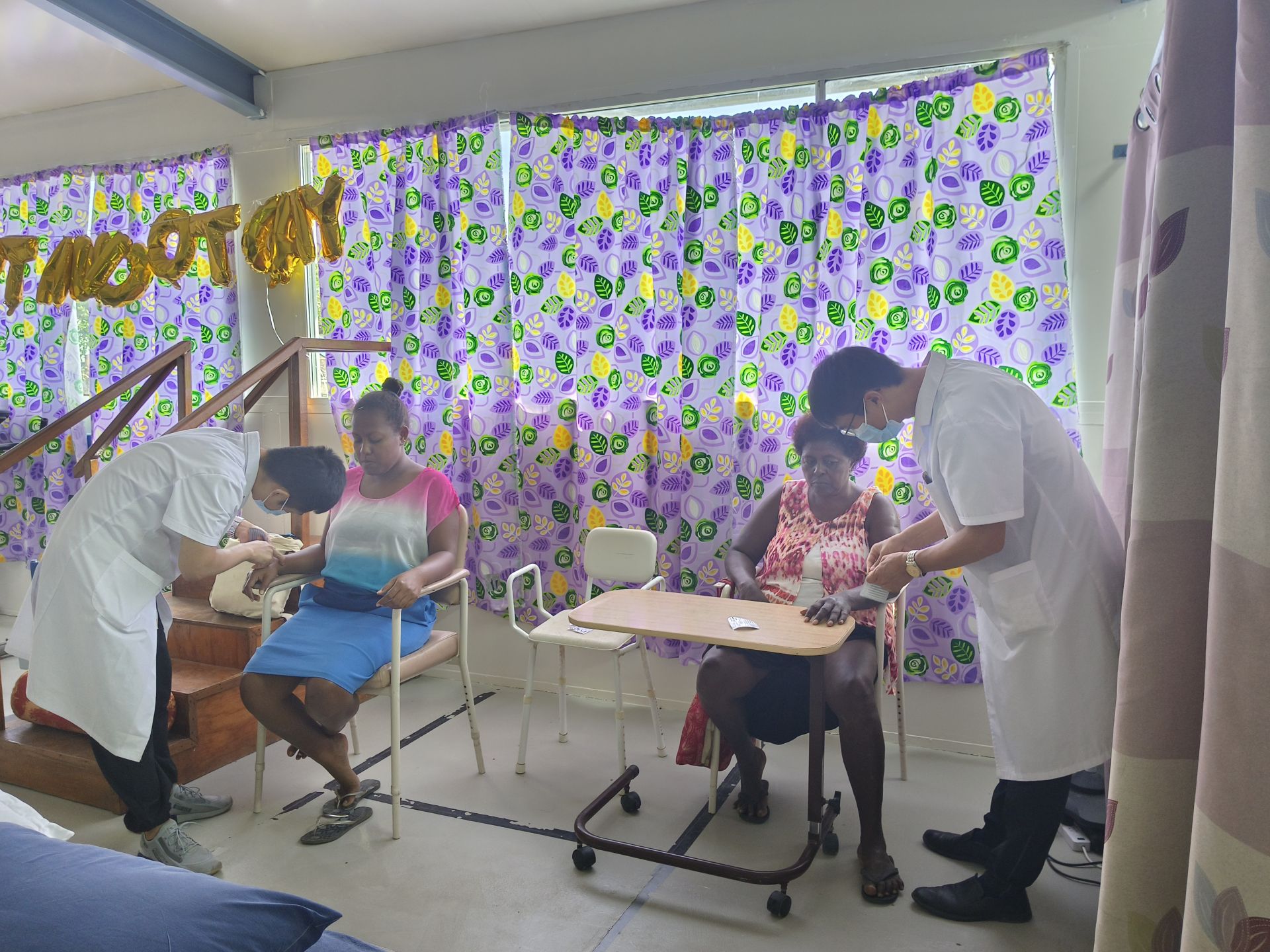 2023年7月3日,中国援助所罗门群岛医疗队针灸大夫在所罗门群岛首都霍尼亚拉国家转诊医院为患者治疗。