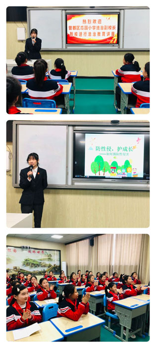 法治教育讲座 学法以明道,用法以立身。3月20日,曾都区瓜园小学邀请学校法治副校长——曾都区检察院叶济芸同志到我校为学生进行法治法规知识讲座,同时给五、六年级女生普及防性侵知识,传授自我保护技能,为未成年人健康成长保驾护航。