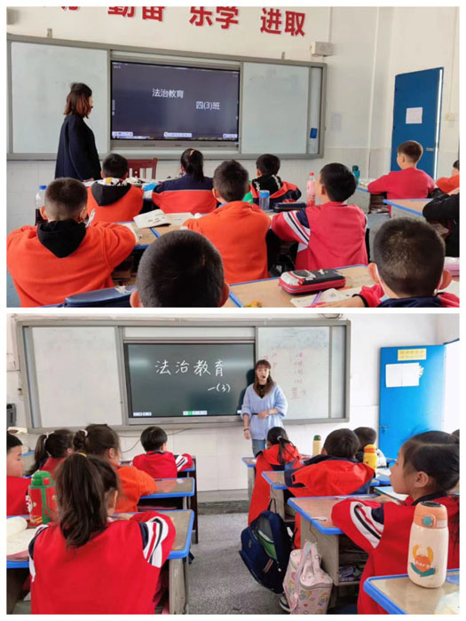 一是学校在升国旗后,进行了国旗下讲法活动,开展法制宣传晨读。学校在周一进行了以“做遵纪守法学生,创和谐平安校园”法制宣传主题升旗仪式。从法制宣传日的介绍开始,强调法制对于社会发展的重要意义,倡议同学们提高法治意识,从小事做起,遵守学校校规校纪,做一名知法懂法用法的好少年。
